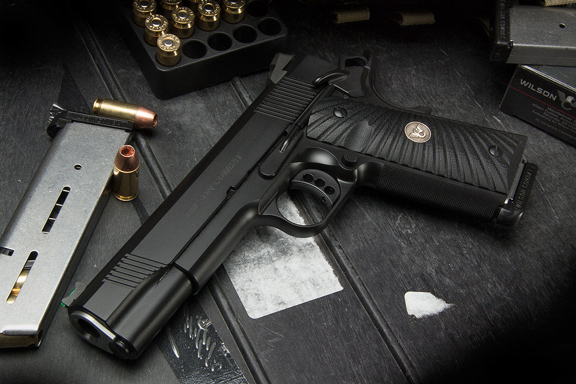 Compact with a barrage of custom options destined for urban carry.This alloy-framed flyweight was optioned with various custom features and rich, rugged Black Armor-Tuff coating exactly to specifications including his initials.Starting with forged, aluminum frame, this .45 ACP CQB Compact has optional carry cuts for smooth re-holstering and press-checking;an “extreme” dehorn for the ultimate in abrasion resistance to hands holsters and exclusive round butt treatment.The various Bullet proof part upgrades like concealment beavertail, hammer and thumb safety.